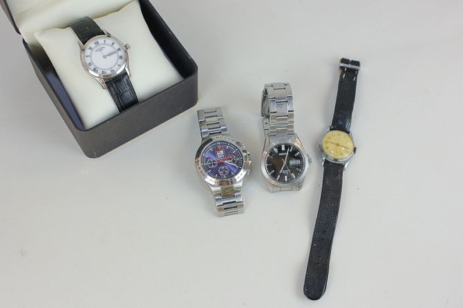 A Royal Navy gentleman's watch with three subsidiary dials, together with a cased Rotary watch and two others (a/f)