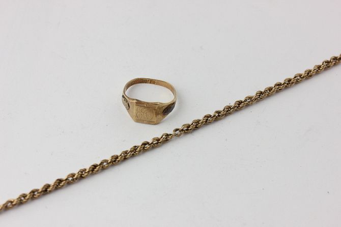 A 9ct gold signet ring, and a 9ct gold bracelet, (clasp a/f) 6.1g