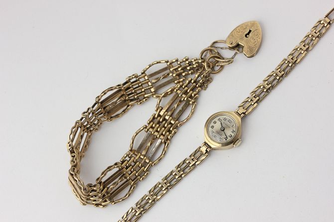 A 9ct gold bar link bracelet, 22.4g, a lady's 9ct gold Everite bracelet watch, 11.2g gross