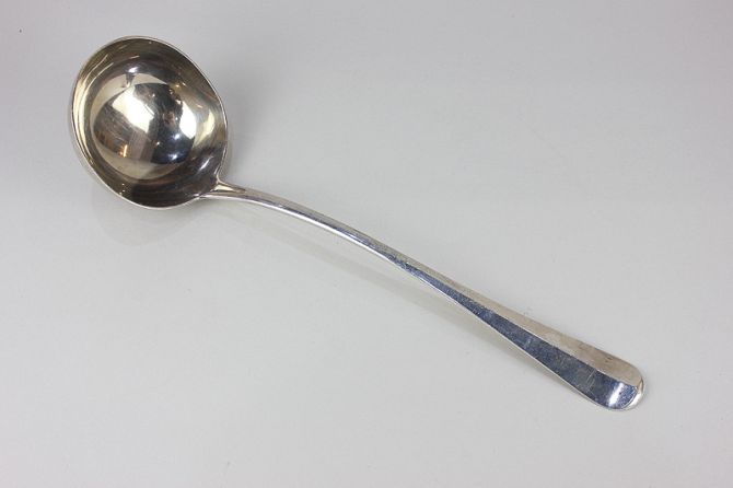 An Edward VII Old English pattern silver soup ladle with rattail bowl, maker Goldsmiths & Silversmiths, London, 8.5oz