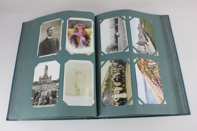 An album of early 20th century and later postcards, black and white and colour, mostly local views, topographical, humorous, famous paintings, to include 'Innocence' by Greuze, Bishops Avenue East Finchley, and Brighton Carnival