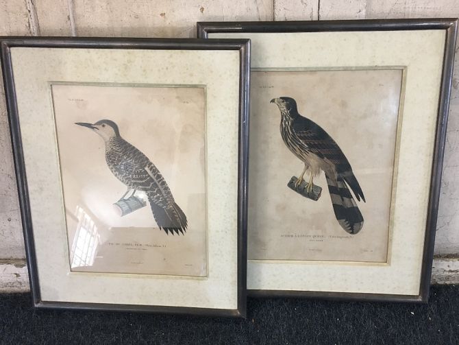 Two framed French ornithological colour prints after Pretre, Voy de la Coquille, to include a falcon, 34cm by 25.5cm