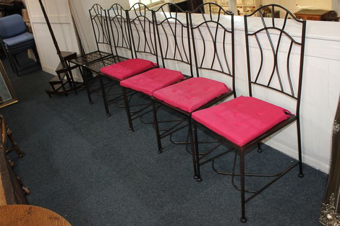 A white painted cast iron three seat garden bench with scrolling pierced back an...