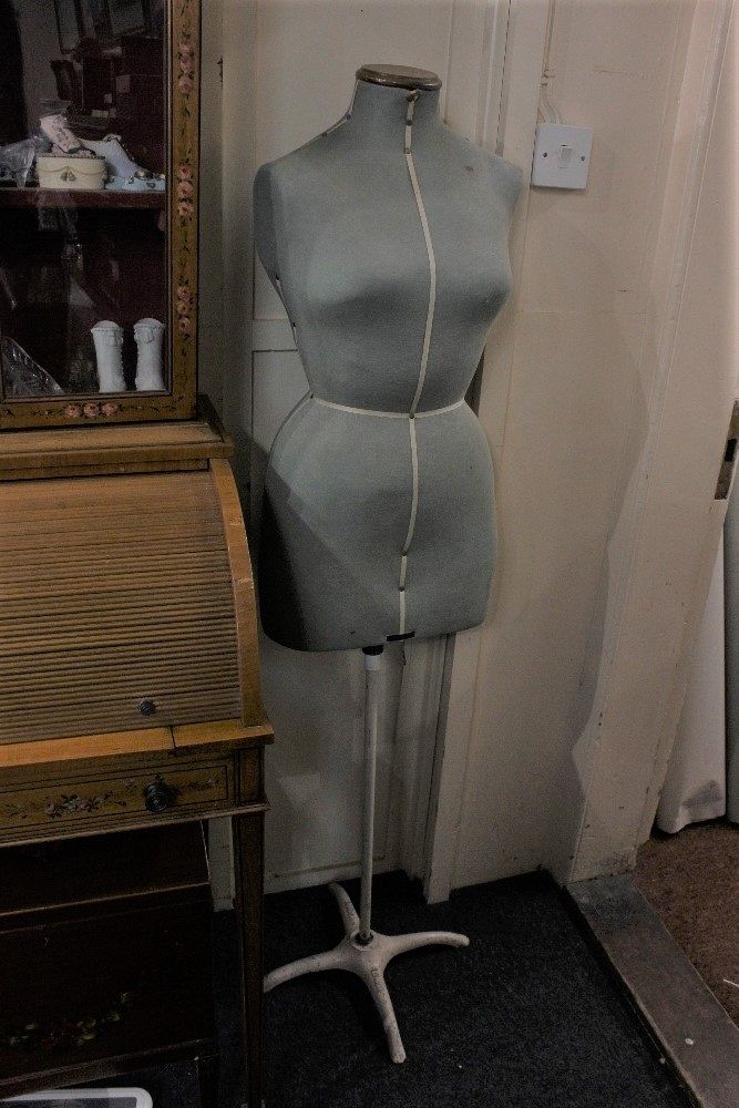 A Singer dressmaker's mannequin, on white painted metal tripod base