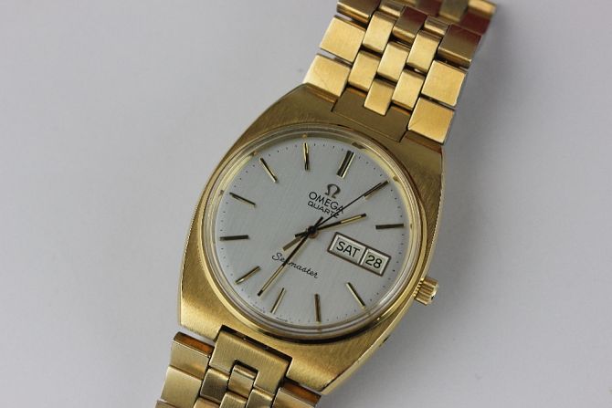 Omega. A gold plated Omega Seamaster bracelet watch quartz movement