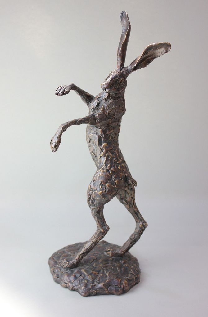 A Frith bronzed resin sculpture of a dancing hare, paper label verso, 52cm high