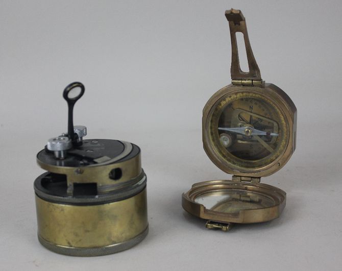 A Stanley London brass compass, and another navigational instrument (a/f)