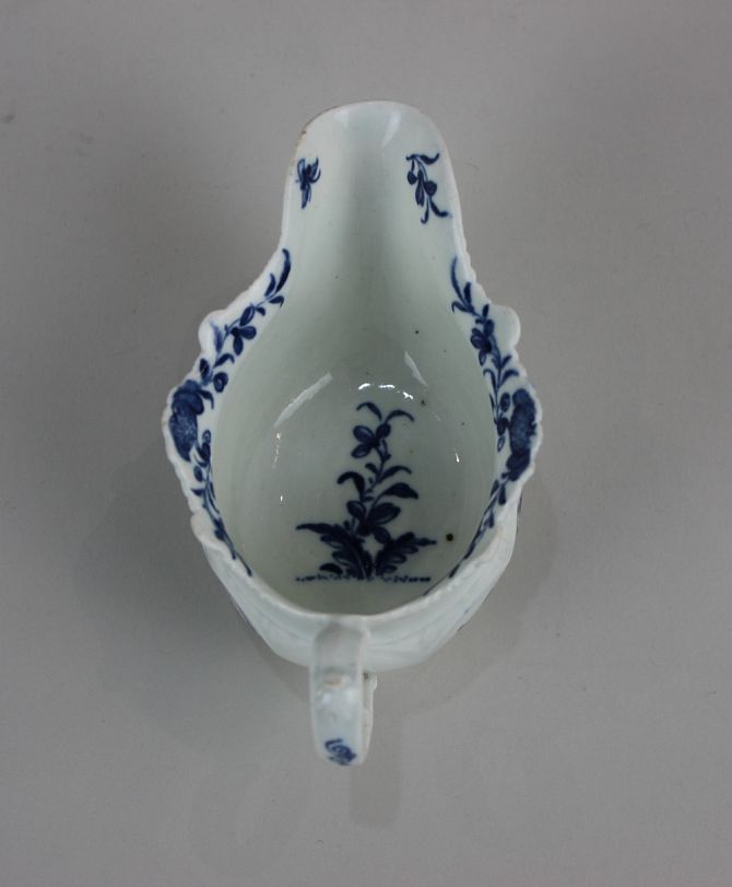 A Worcester porcelain 'Two Porter' pattern blue and white small sauce boat, 12cm long Provenance: From a local Private Collection