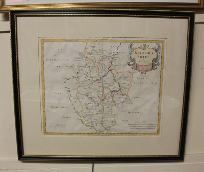 A framed Robert Morden map of Bedfordshire 32cm by 40cm