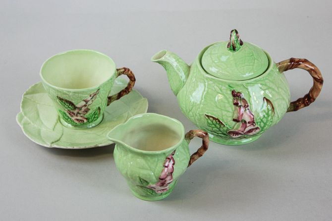 A collection of Carlton Ware 'Green Flower' to include a three piece tea set with two cups and saucers, a jam pot and cover and a toast rack and a Carlton Ware 'squirrel' cruet