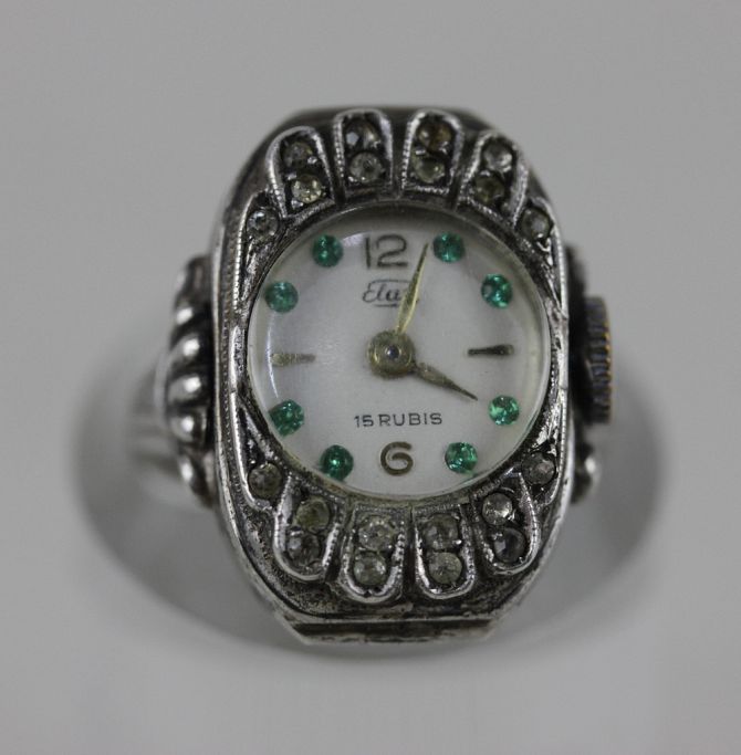 A quantity of silver and costume jewellery, to include a novelty silver watch ring, silver hinged bangle, gemset brooches, rings and silver neckchains