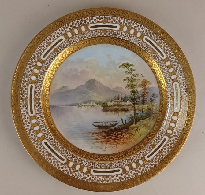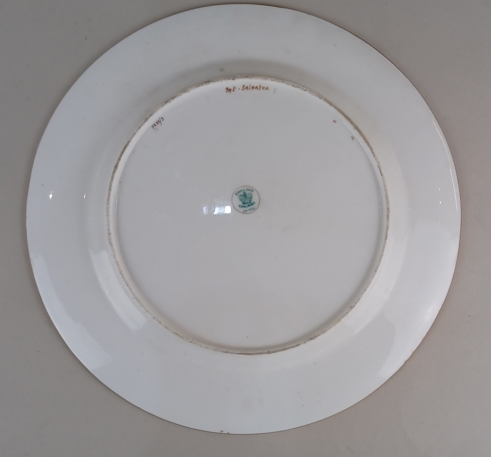 A Coalport porcelain cabinet plate, painted with a view of Mount Salvator, signed E O Ball, within a gilt border 26cm
