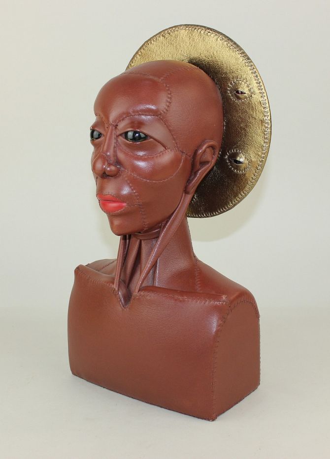 Mandy Havers (20th century) 'Icon', leather and mixed media, purchased from Nicholas Treadwell Art Mill 1991, 35cm