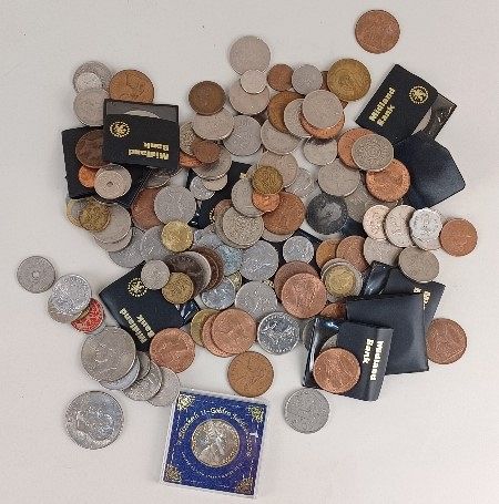 A collection of British and international coinage, some silver, to include commemorative crowns