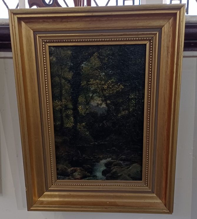 C Knight (19th century) woodland stream, oil on canvas, signed, 24cm by 16cm
