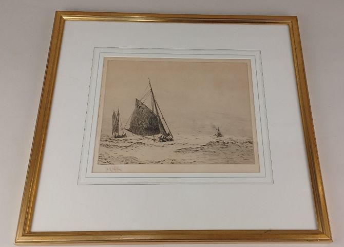 William Lionel Wyllie (1851-1931), steam and sailing boats, etching, signed in pencil, 21cm by 25.5cm (a/f)