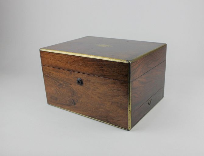 A Victorian rosewood sewing box, the lock plate stamped 'Bramah's Patent' width 28.5cm, depth 21cm, height 17cm (a/f)