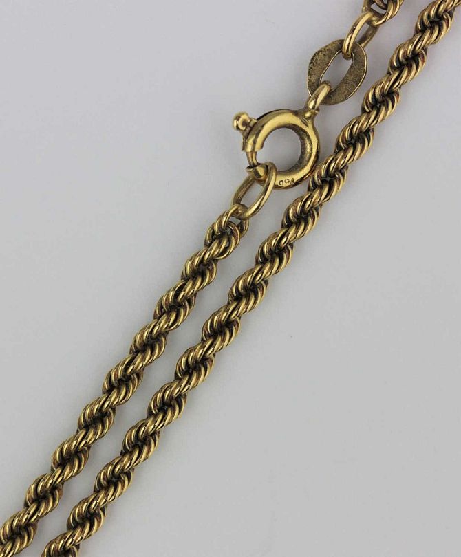 An 18ct gold rope twist link neck chain on a bolt ring clasp detailed 750 11.8g