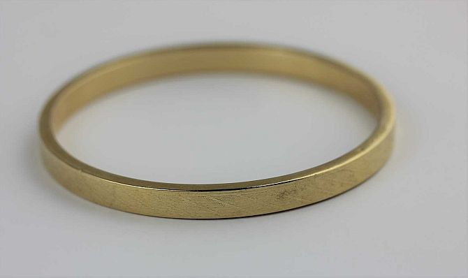 A 15ct gold circular hollow bangle the exterior engine turned, internal diameter 6.7cm, Chester 1925, 13.5g