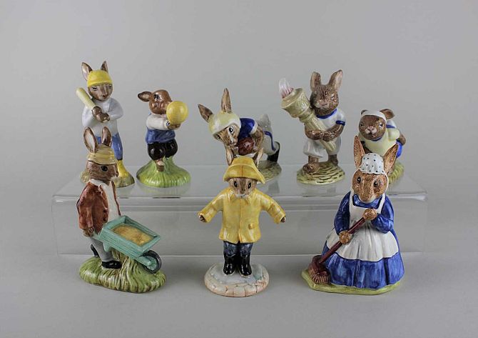 Eight Royal Doulton Bunnykins figures to include Home Run, Jogging, Harry and Olympic