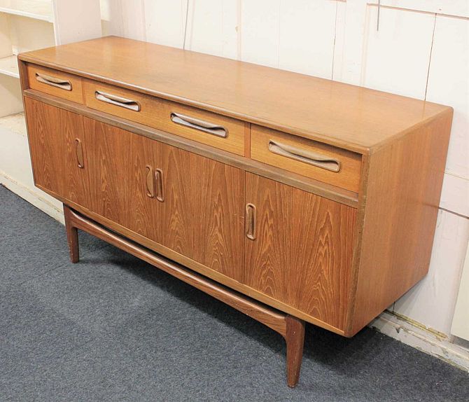 A mid 20th century G-Plan Fresco teak sideboard three drawers above cupboards on tapering legs, 152cm