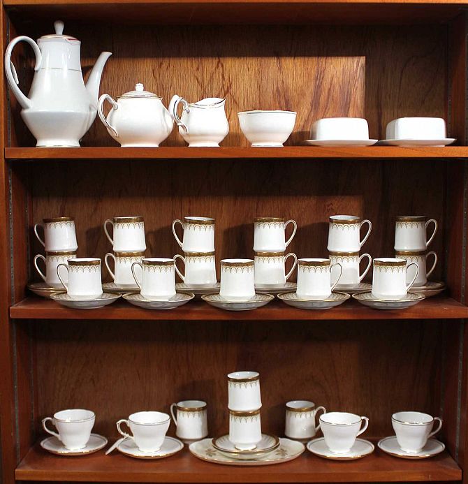 A Paragon porcelain Athena pattern part coffee service comprising twenty-one cups and nineteen saucers, together with a Duchess tea set for four and other white and gilt porcelain