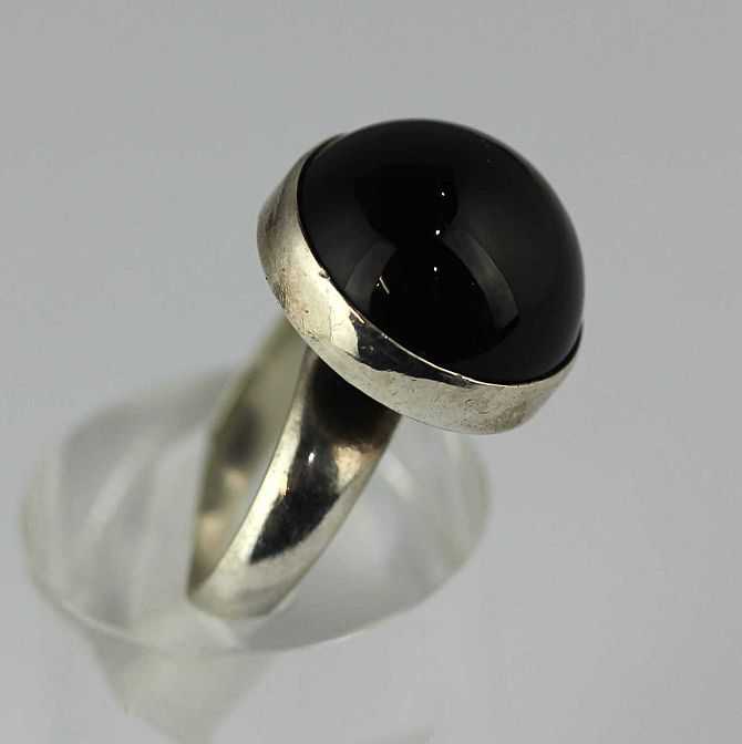 A Georg Jensen silver and black onyx ring detailed '925 S 123G'