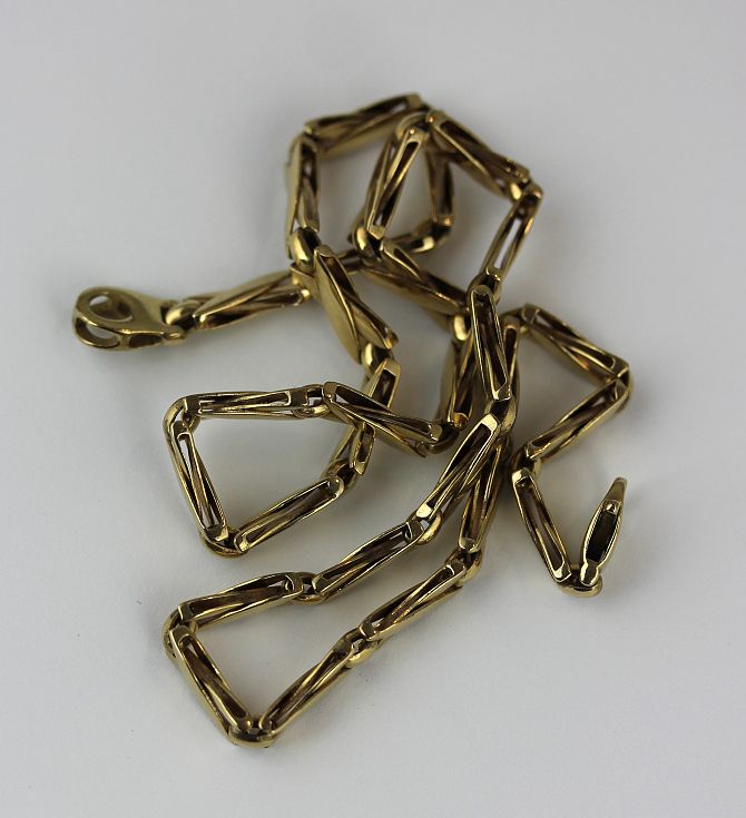 A 9ct gold collar necklace in an X shaped link design on a sprung hook shaped clasp, length 42cm, 19.8g