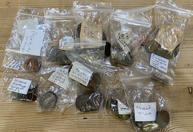 A collection of George IV and later British coinage to include four commemorative £5 coins, crowns, shillings and pennies