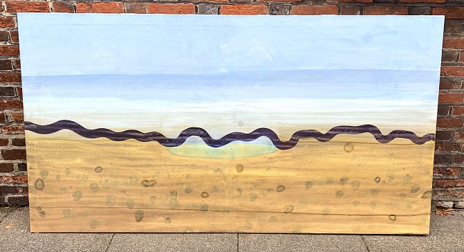 Luke Elwes (British, b.1961), 'Walk', 1993, large scale oil on canvas, signed, titled and dated verso, also bears label verso for Galerie Vielle du Temple, 23 Rue Vielle du Temple, Paris, 107cm by 198cm, stretchered but unframed.