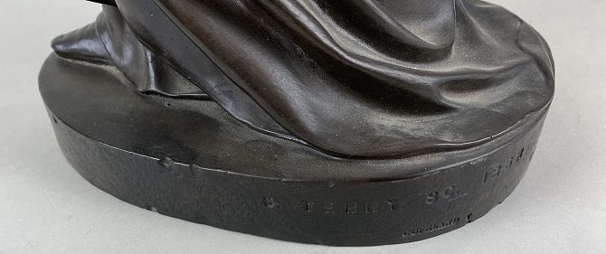 A Copeland parian figure of Marguerite with a bronze effect glaze, designed by Sarah Terry for Copeland, impressed marks, Copeland, S Terry Sc, 1868, height 50cm