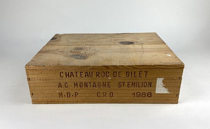 An unopened case of 1986 Chateau Roc de Gilet Montagne-Saint-Émilion