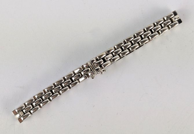 An 18ct white gold bracelet in a three row oval link design on a snap clasp 21.1g