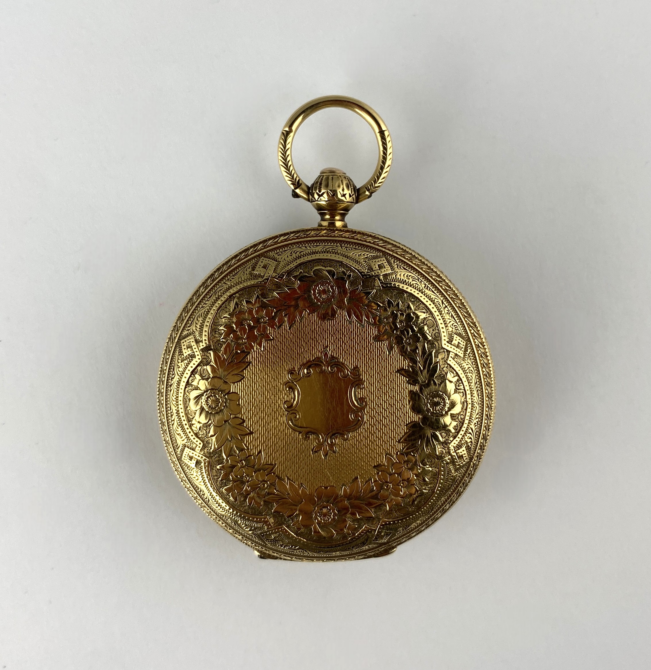 An 18ct gold cased key wind open faced fob watch the movement detailed 'J. SUTTON, BRISTOL 22899', London 1878