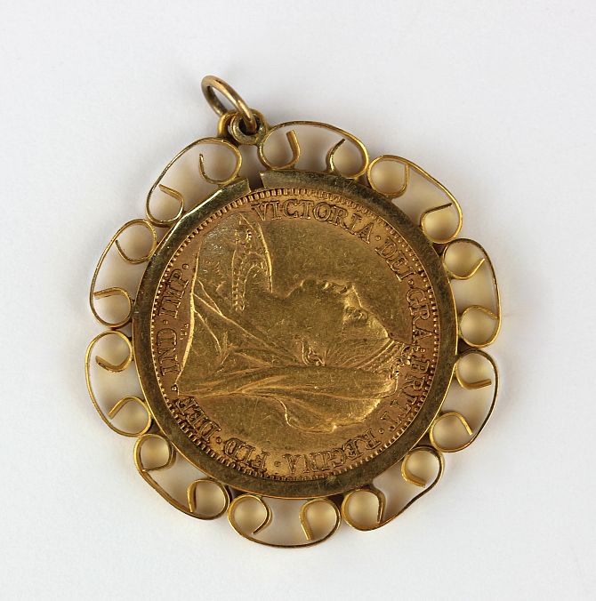 A Victoria Old Head sovereign 1896 M in a 9ct gold pendant mount, gross weight 9.9g