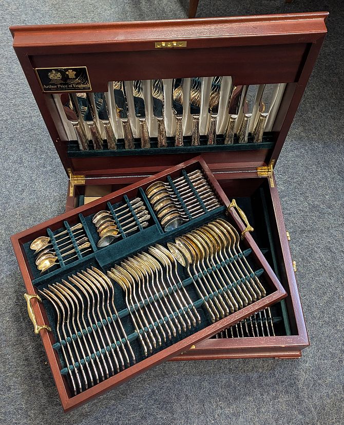 A canteen of Arthur Price 'Ritz' pattern cutlery in fitted case (some teaspoons missing) and a small number of additional items, plus paperwork
