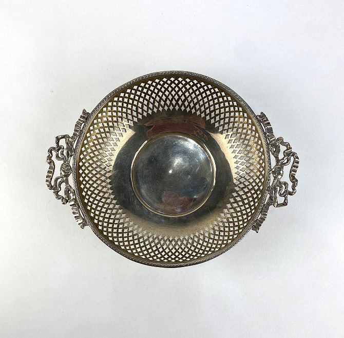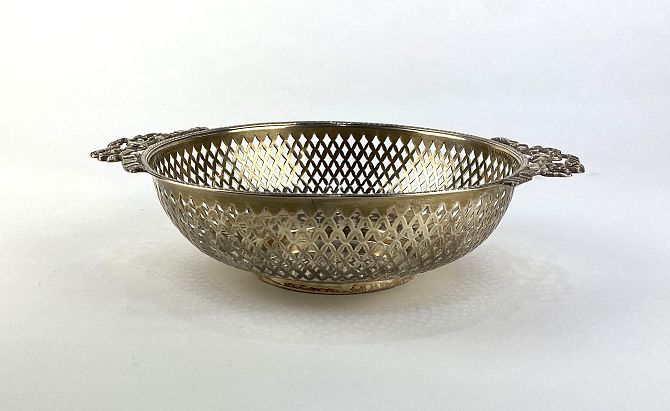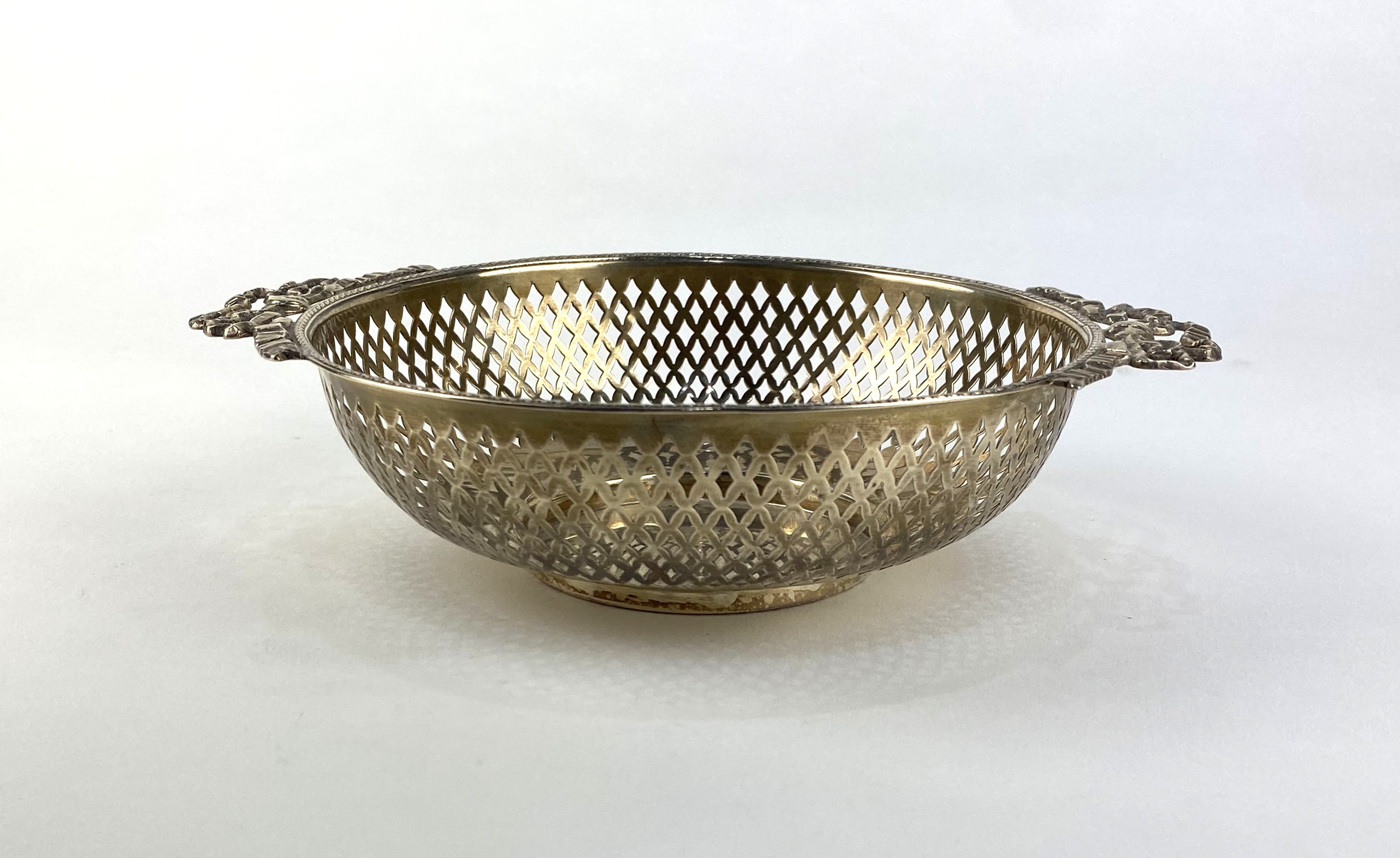 An Edward VII pierced silver bowl, maker Synyer & Beddoes (Harry Synyer & Charles Joseph Beddoes), Birmingham 1910, with pierced ribbon handles, 15.5cm diameter, 4.5oz