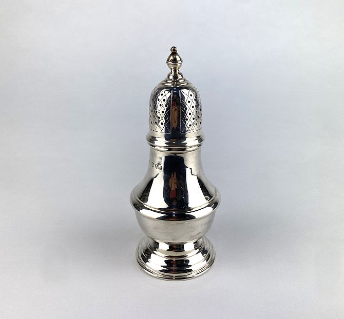 An Elizabeth II silver sugar caster, by Israel Freeman & Co., London, 1959, height 17.75cm, 6.1oz