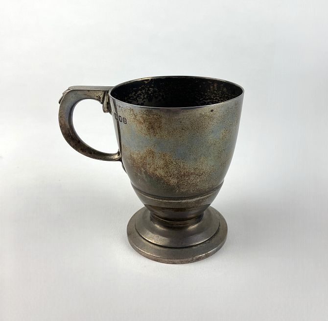 A George VI silver mug, makers mark worn, London 1937, 5.1oz