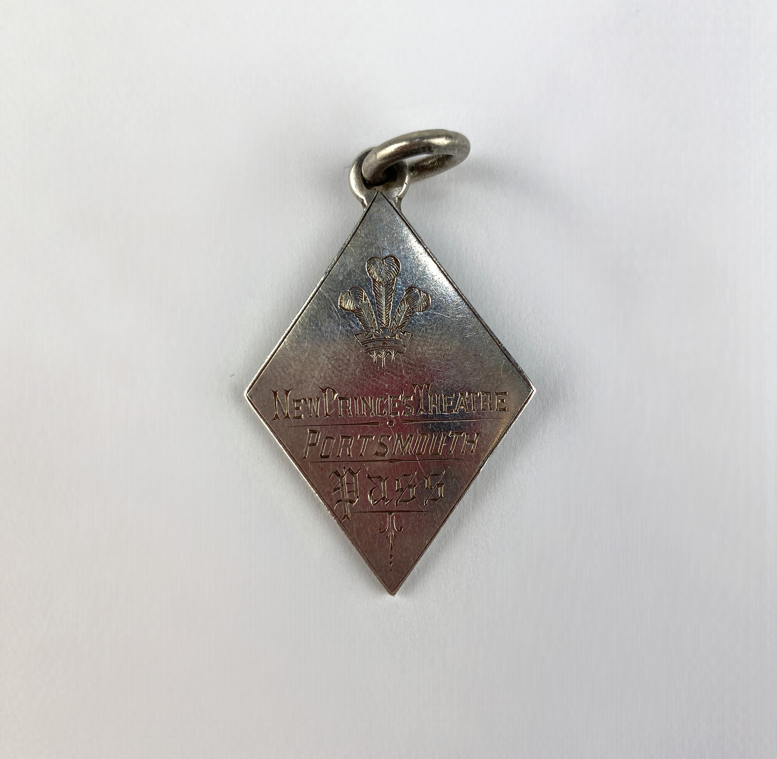A Victorian silver lozenge shaped fob medal detailed 'New Princes Theatre Portsmouth Pass', Birmingham 1891