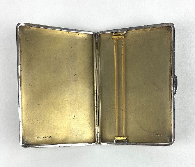 A silver cigarette case other small silver items to include a silver horseshoe l...