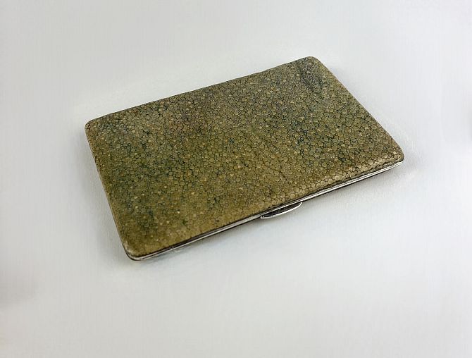 A George VI Art Deco silver and shagreen cigarette case, by P.H. Vogel & Co., London, 1947, gilt wash interior, width 12.5cm, gross total weight 6.4oz