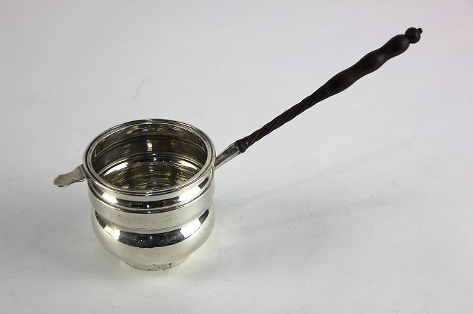 A George III silver strainer, makers mark worn, London, 1813, with turned wooden handle, height 11cm, total weight 2.9oz