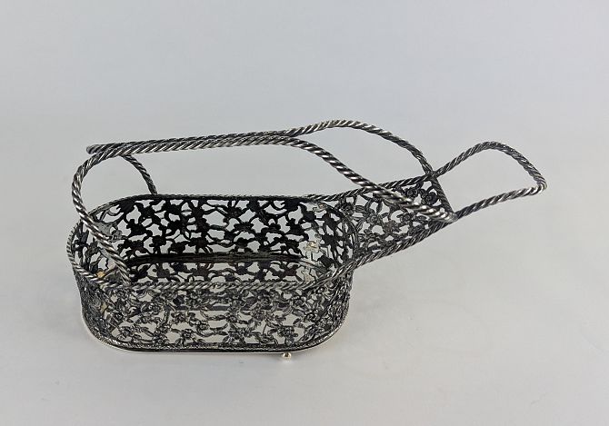 A Cassetti Italy 925 silver bottle holder with pierced floral design on ball feet (one ball missing) 20oz