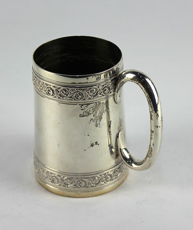A late Victorian silver tankard, by Walter & John Barnard, London, 1878, decorated with dual floral bands, numbered 2275, height 12cm, 10.9oz