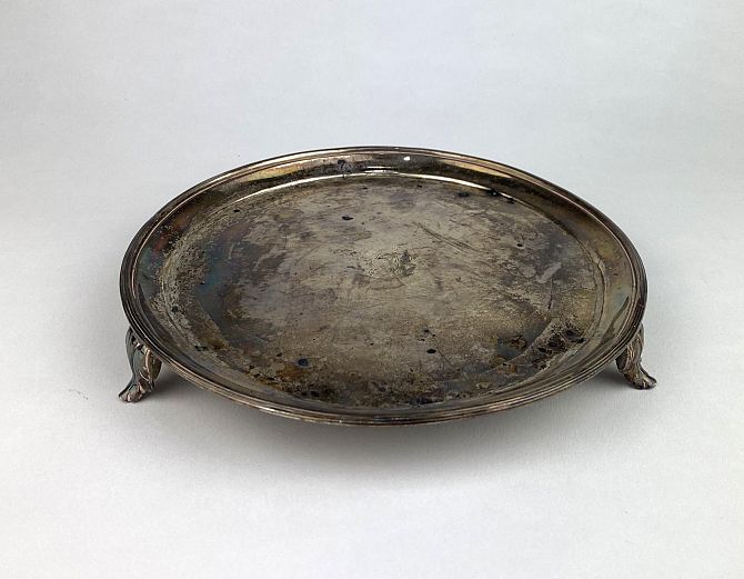 A George III silver card tray, London 1792, 17.5cm diameter, 6.91oz.