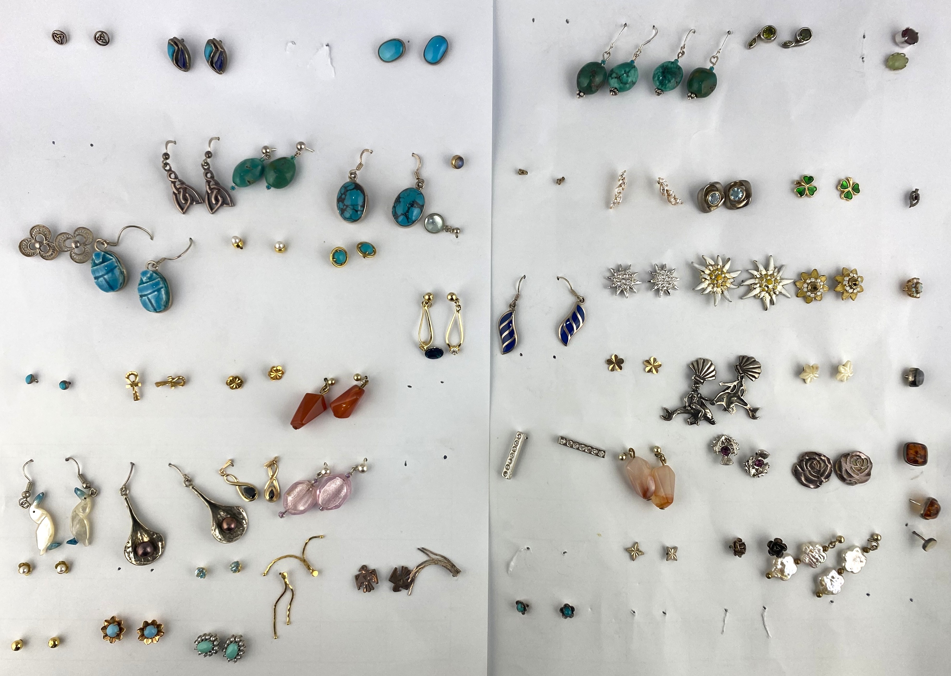 A collection of various pairs of earrings, including some of Egyptian design
