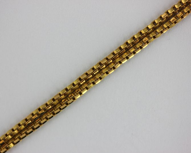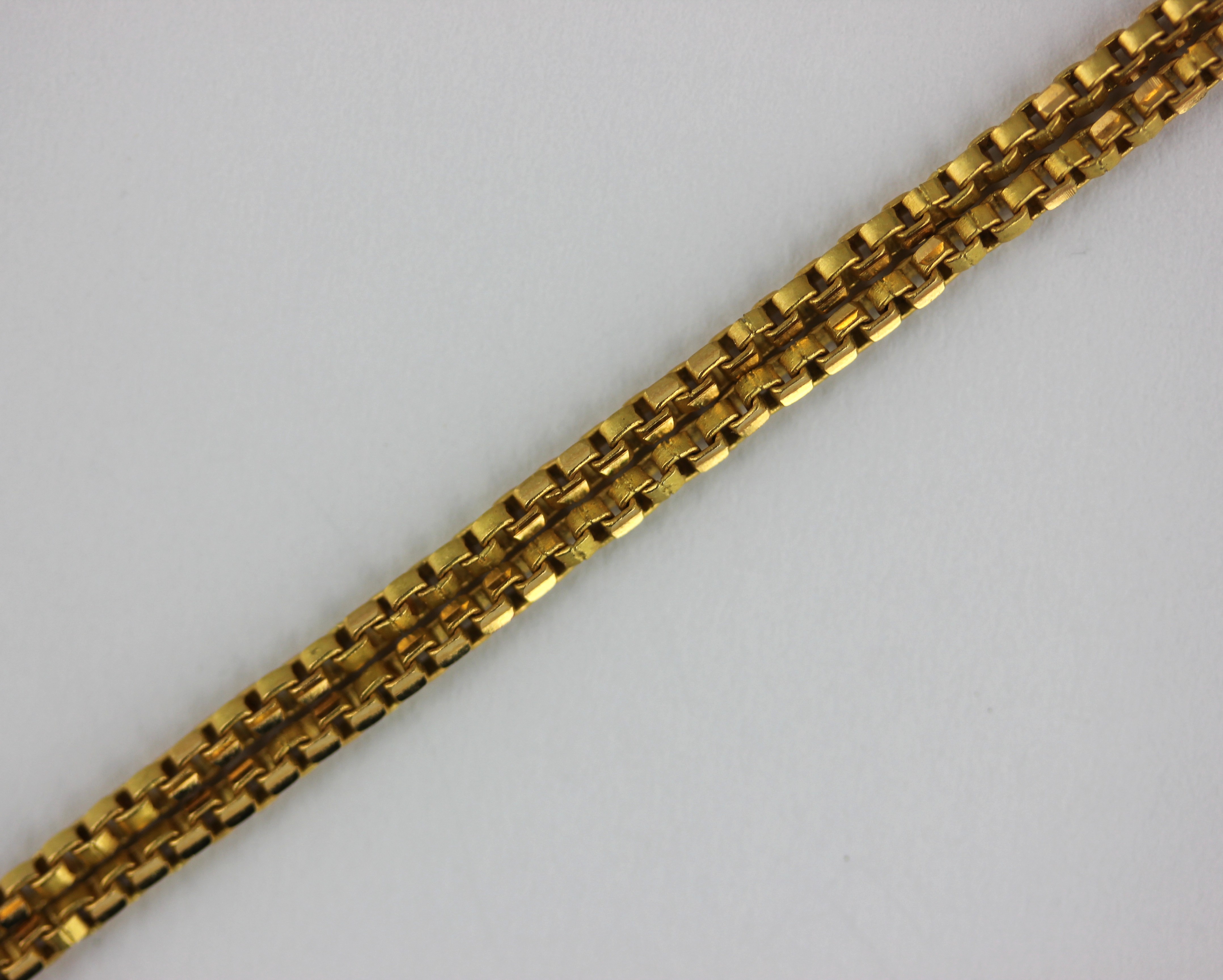 An Egyptian gold neckchain in a faceted box link design on a gold boltring clasp, detailed 750, weight 5.3g