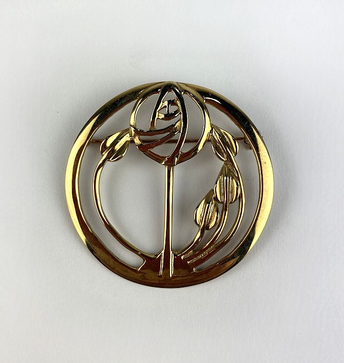 A 9ct gold brooch in a circular William Morris inspired design, 4cm, 10.3g