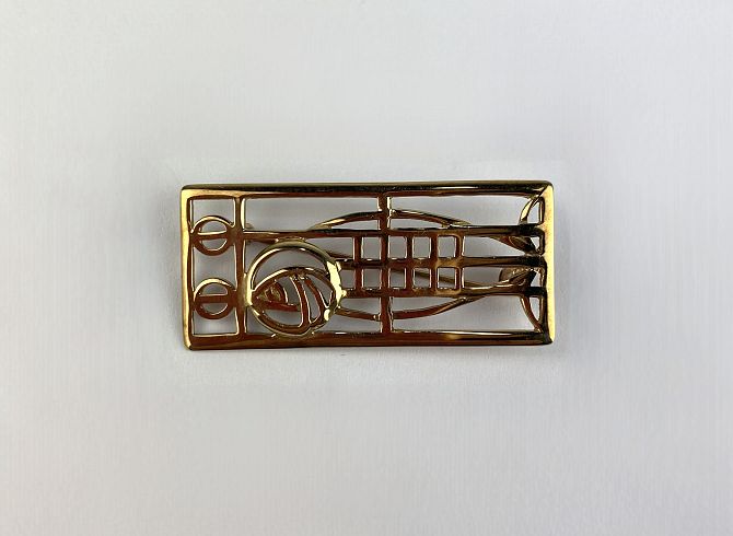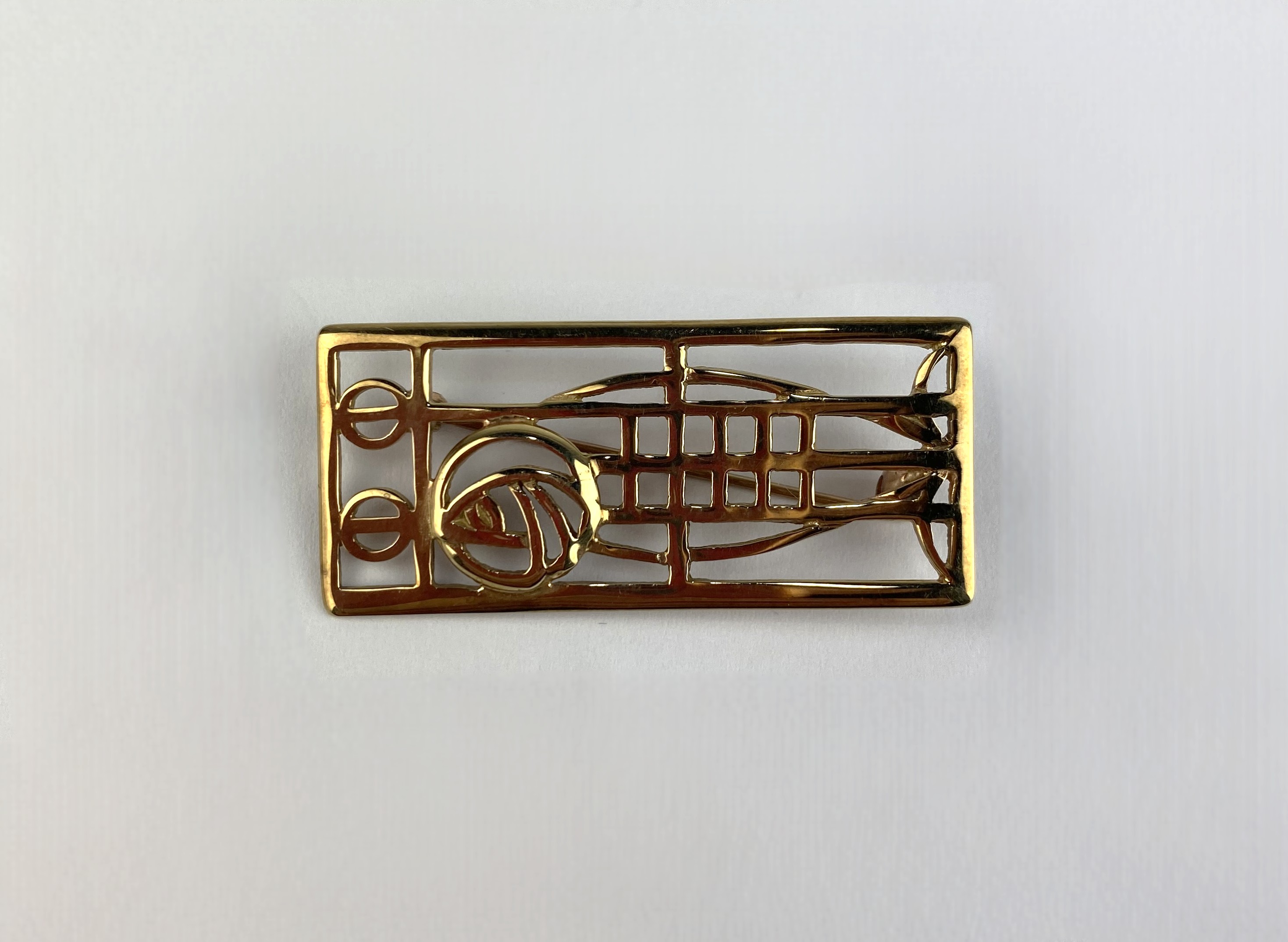 A 9ct gold brooch in a Charles Rennie Mackintosh inspired design, 4cm long, 5.7g